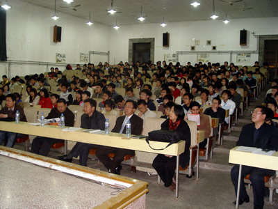 党总支书记兼院长王培山,副院长刘喜梅、童刚,硕士生导师安世奇、赵文仓和06级各专业学生400余人参加了会议,会议由学院党总支副书记吴汉勇主持。