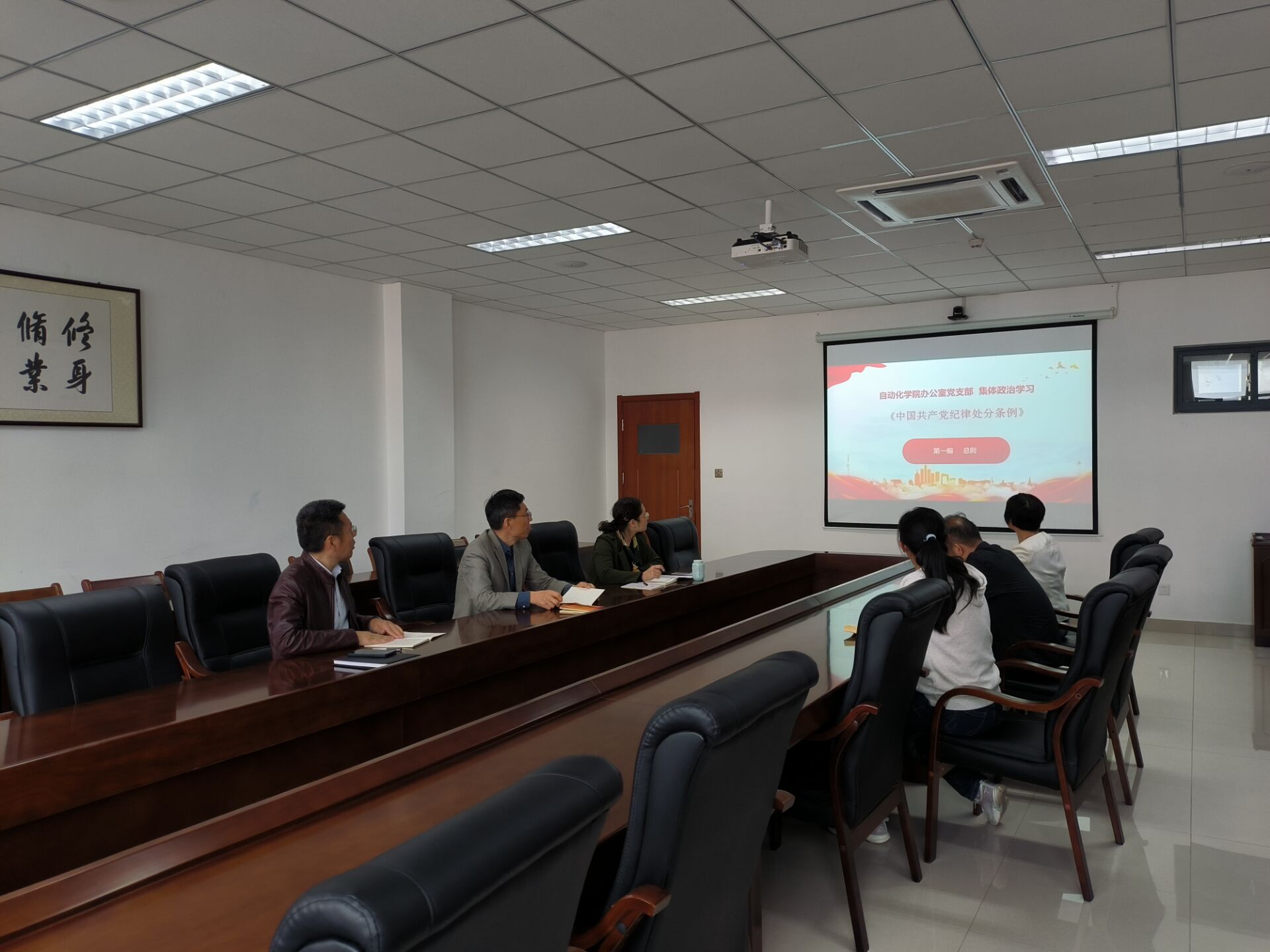办公室党支部于学院楼408会议室集体学习研讨《中国共产党纪律处分条例》。