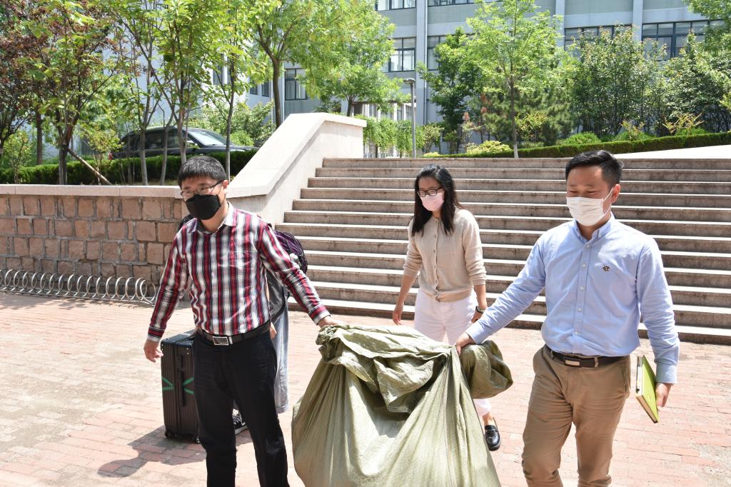 用心用情,细致入微,奏响温馨家园进行曲。为了以崭新洁净的环境迎接自化学子“回家”,学院组织辅导员联合宿管老师提前对学生宿舍进行了消毒和卫生工作。学院精心设计,在学院楼、宿舍楼营造温馨暖心的返校氛围,为学生返校做好贴心准备。学院领导、辅导员老师到校门口接待点迎接返校学生,指导学生做好扫码报到、体温检测等工作,详细了解学生返校过程、防护措施,以及假期生活等情况,陪伴学生到指定地点做核酸检测,叮嘱他们养成良好的卫生习惯,提高防疫意识,并欢迎他们安全返校。测控163班返校同学常致瀛说:“返校前学院的用心叮嘱、耐心解答,到青岛火车站时的热心接站老师,进入学校后熟悉的辅导员,到宿舍前远远能看见“欢迎自化学子回家”的条幅,以及学校的爱心送饭服务,让我深深感受到学校在特殊时期细致入微的关怀,感谢学校和老师们的无私付出。”