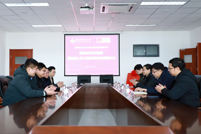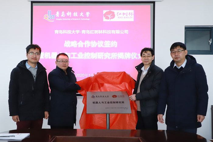 1月11日上午,青岛科技大学-青岛红树林科技有限公司合作协议签约暨机器人与工业控制研究所揭牌仪式在推特福利