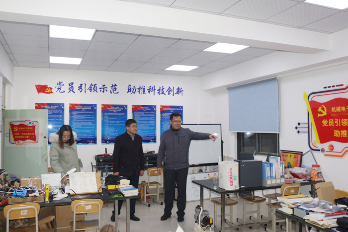 会后,马寒一行在苏超的带领下实地参观了机械电子工程学院“小平科技创新团队”工作室、学生科技创新成果展厅、静心书舍、党员之家等党建和大学生思想政治工作阵地。