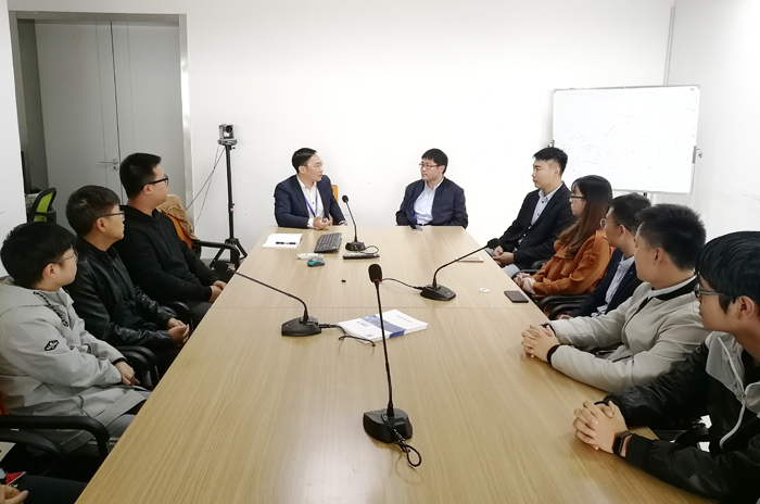 宋明忻对马寒一行的到来表示热烈欢迎,向母校对公司发展给予的支持与关怀表示感谢。宋明忻介绍了公司的成长历程、战略布局和发展规划,他表示,近年来公司发展处于快速上升期,对人才的需求也更为迫切,学院向公司输送的毕业生都充满干事创业的激情与活力,部分校友已经成为公司技术、业务骨干,奋斗在公司产品研发、技术服务第一线,为公司的发展注入源源不竭的动力。公司也将继续创造良好条件,进一步深化公司和学院的合作。