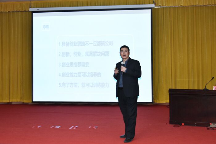 会上,学院聘请褚庆柱为大学生创新创业导师,郭仲聚为褚庆柱颁发聘书。褚庆柱作“创新创业之结构化思维”报告。他在报告中指出,生活中需要有效表达,并结合身边生动事例分析了有效表达背后的科学思维,为现场师生揭开“结构化思维”的面纱,引导学生干部在日常工作中改进工作方式,提升自身能力素质。张玉在“说出内心的诗和远方—大学生沟通技能”报告中谈到,沟通效果是由文字语言、有声语言和肢体语言达成,这其中肢体语言尤为重要,她以为什么沟通不畅为出发点,详细阐述了学生干部应如何与人沟通交流,向在座各位同学传授高效沟通的方法,以达到圆满完成各项工作的目的。