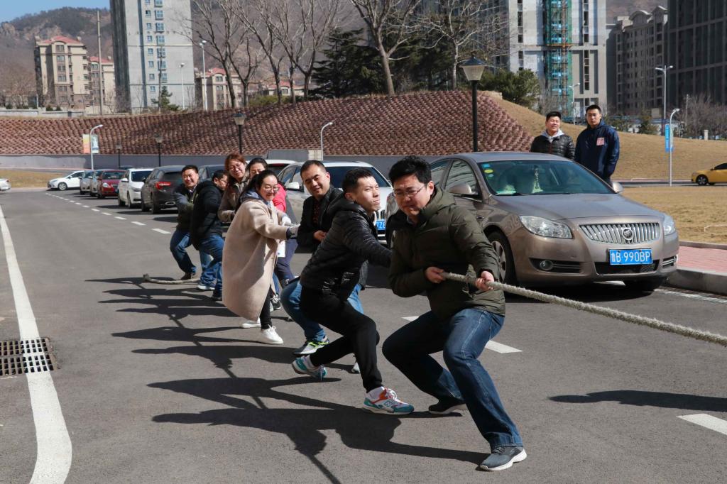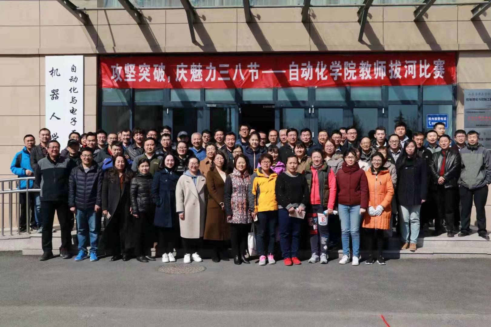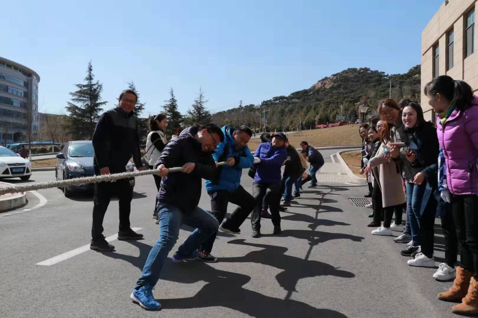 楼大厅前举行了“攻坚突破,庆魅力三八节”教师拔河比赛。