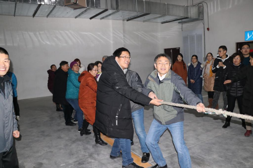 下午两点参赛老师准时到达比赛场地,老师们以参赛队伍为单位有序集合,在裁判员介绍完游戏规则及注意事项后,比赛正式开始。参赛队伍两两对垒,决出最终获胜队伍。比赛过程中,老师们双手紧握长绳,竭尽全力,场下师生也为其加油助威,欢呼声呐喊声响彻停车场,老师们的热情给寒冷的冬日增添了一份暖意。