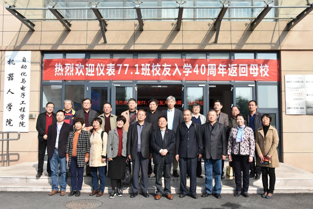 仪表77级1班25位校友返校考察交流。校党委副书记李庆领、学校老领导高青、学校校友办相关负责人和推特福利