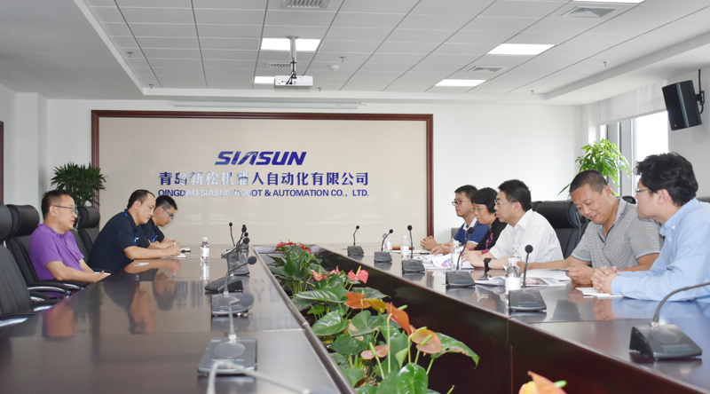 调研中,刘长勇重点介绍了新松公司自主研发的AGV系统及最新研发的自主机器人系列产品,双方就机器人学院专业建设、人才培养、校企合作等方面进行深入交流与探讨。双方表示将以此次考察调研为契机,进一步加强联系,增进交流,在教学科研领域开展更深入合作,实现互惠共赢。