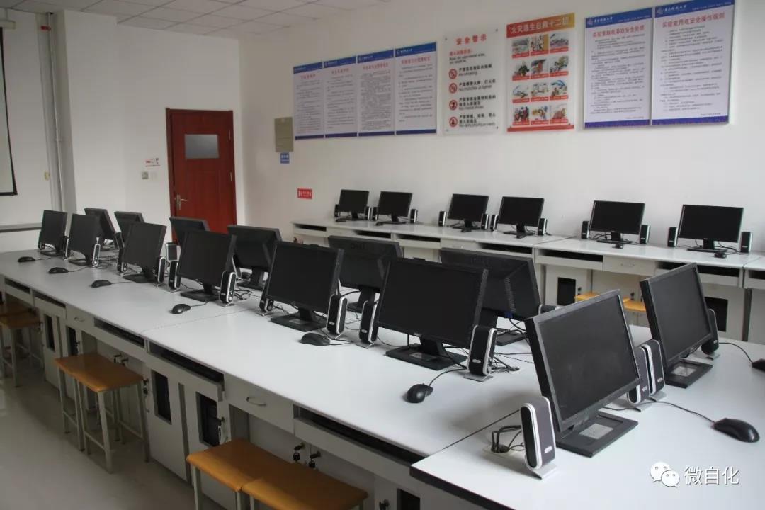 虚拟仪器实验室主要为测控专业学生开设虚拟仪器课程的相关实验,完成基于LABVIEW 的虚拟仪器仪表开发、设计。实验室根据实验课程要求,可通过 NIELVIS 教学实验平台、PCI‐DAQ 数据采集实验平台、RS‐485 数据采集实验平台和工业以太网通讯实验平台对不同现场设备的实时数据进行采集、分析和处理。该实验室同时作为测控系统综合实验平台的中控室,具有模拟工业生产过程监控、软件组态等功能。实验室主要设备有NI ELVIS Ⅱ实验平台18 套,PCI‐DAQ 数据采集卡 30 套,RS‐485 通讯模块20套。
