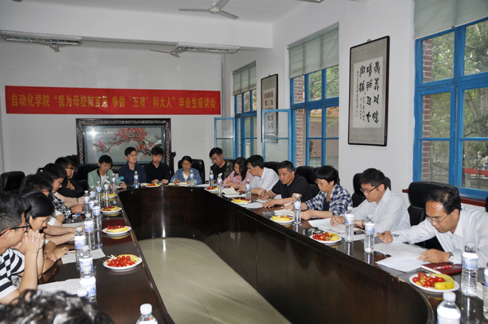 毕业生代表座谈“拉家常”。6月6日下午,学院2017届毕业生“我为母校献言策,争做‘五有’科大人”座谈会在四方校区第二会议室举行,学院党政领导、各教研室主任、教师代表和毕业生代表参加了座谈会。