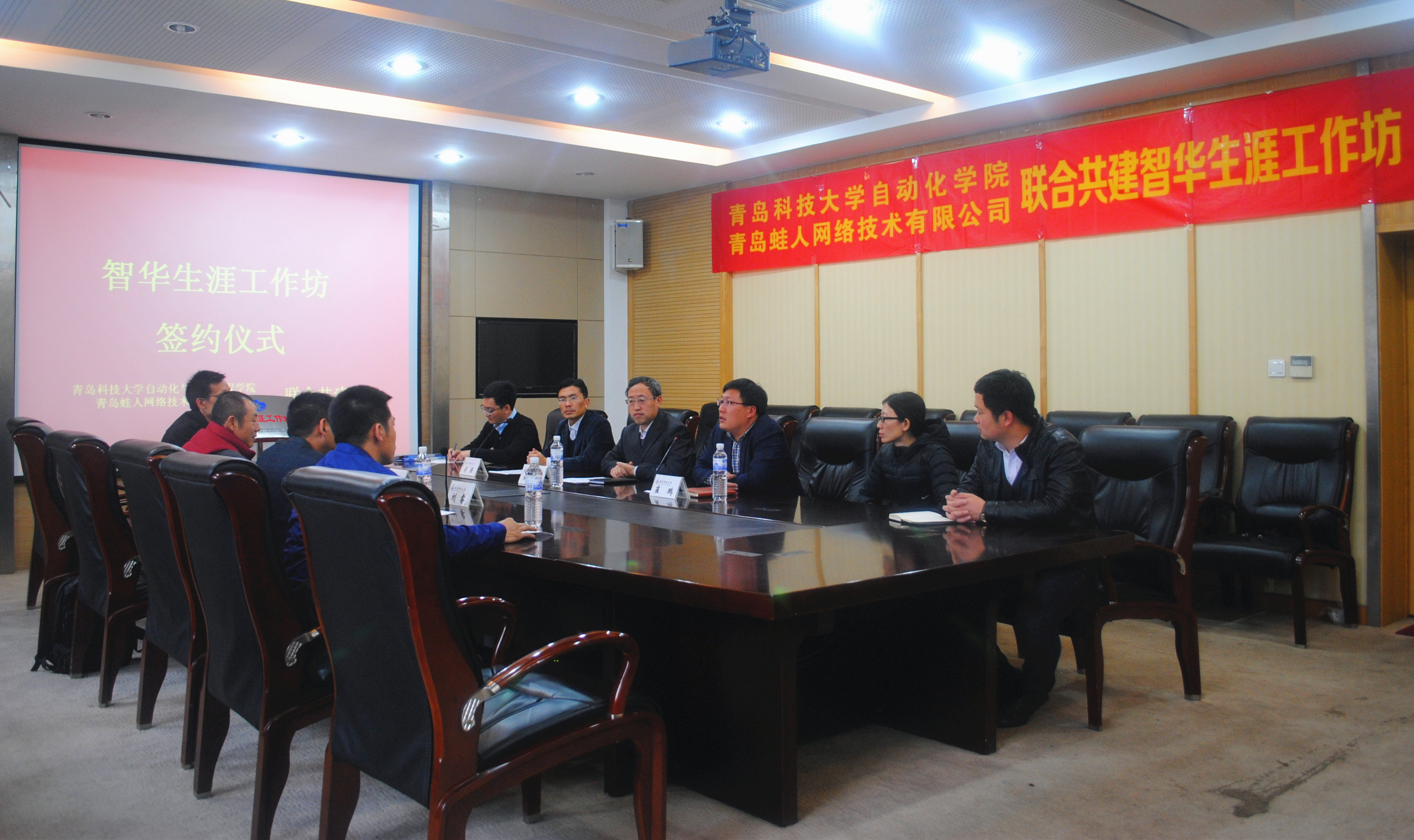 与青岛蛙人网络技术有限公司共建的山东省首家校企合作大学生职业生涯工作坊——“智华生涯工作坊”揭牌仪式在四方校区第一会议室举行。推特福利