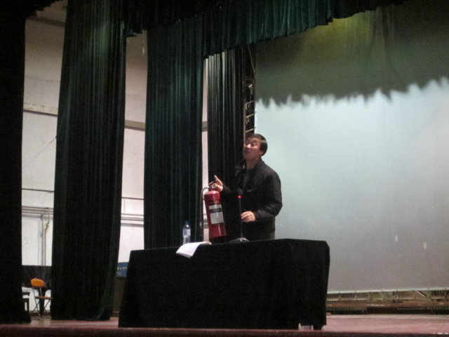 形势政策专题教育由马克思主义学院朱鹰、学院党总支副书记肖强、学院分团委副书记刘兆鹏担任主讲,三位老师分别就如何正确认识西亚北非亚太形势、准确把握2012年经济工作主要任务、贯彻落实社会主义核心价值体系等热点问题进行了详细解读。消防安全专题教育由公安处消防科张国宏担任主讲,他通过真实的案例,讲解了火灾发生的条件、规律和消除火灾隐患的方法,火灾现场逃生技巧,灭火器、消防栓使用方法以及如何报警与自救等问题,让同学们深刻认识到了遵守学校的规章制度、牢固树立消防安全意识的重要性。