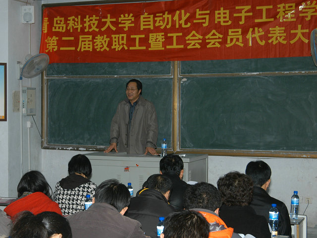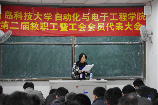 院长刘喜梅在会上代表学院做了题为《团结务实、开拓创新、加快学科建设步伐建设一流的教学研究型学院》的工作报告。报告对2011年的工作进行了全面回顾:一年来,“控制理论与控制工程”获批山东省重点学科,自动化专业获批省品牌与特色专业,申报省级精品课程一门,省级示范中心、“工业过程先进控制与优化技术”省级重点实验室、与软控股份有限公司联合申报了“轮胎装备先进控制及优化工程技术中心”省级工程中心;科研工作获得了历年来的最好成绩,科研项目合同额1322万元,获得国家自然科学基金项目1项,青年基金项目1项,省自然基金项目1项,教育厅项目1项,纵向经费94万元,承担横向项目30余项,实际到账893万元;获发明专利1项,实用新型专利2项,软件著作权3项,发表论文73篇,其中被SCI、EI、ISTP收录41篇。2011年电子设计大赛获得国家二等奖1项,山东省一等奖9项,二等奖5项、成功参赛奖5项,为历年之最;报告还从学科建设及规划、科学研究、教学工作、学生工作等四个方面对“十二五”期间学院发展的主要任务和保障措施进行了阐述和部署,进一步明确了“十二五”期间学院发展的指导思想、思路和目标。