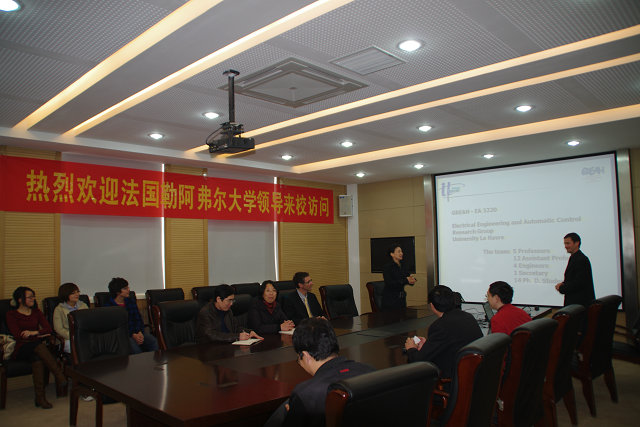 座谈中,双方教师就完善合作项目的教学计划、优化课程设置、强化法语教学和实习环节、加强双方在科研方面的交流与合作等方面进行了深入细致地交流;Lauwick介绍了勒阿弗尔大学的办学历史、学科特色、校园文化以及留学生的学习、生活情况;Lefebvre详细介绍了勒阿弗尔大学自动化学科的教学条件、研究方向和科研项目,并现场回答了师生的提问。