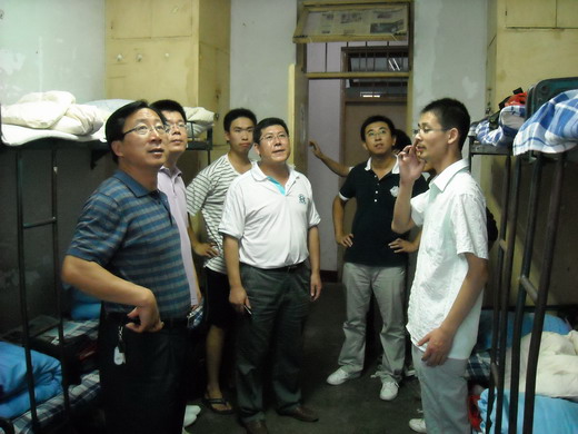 95日晚,自动学院党总支书记、院长王培山、副书记吴汉勇和分团委老师前往22号男生宿舍楼看望慰问2009级新生。