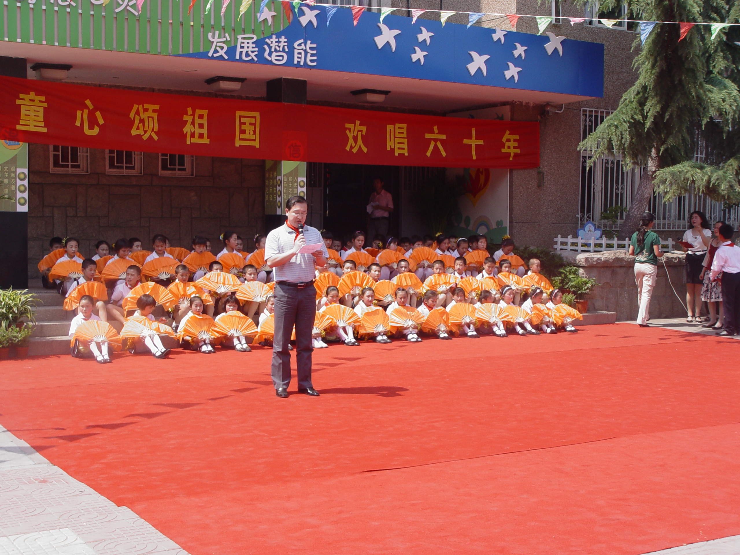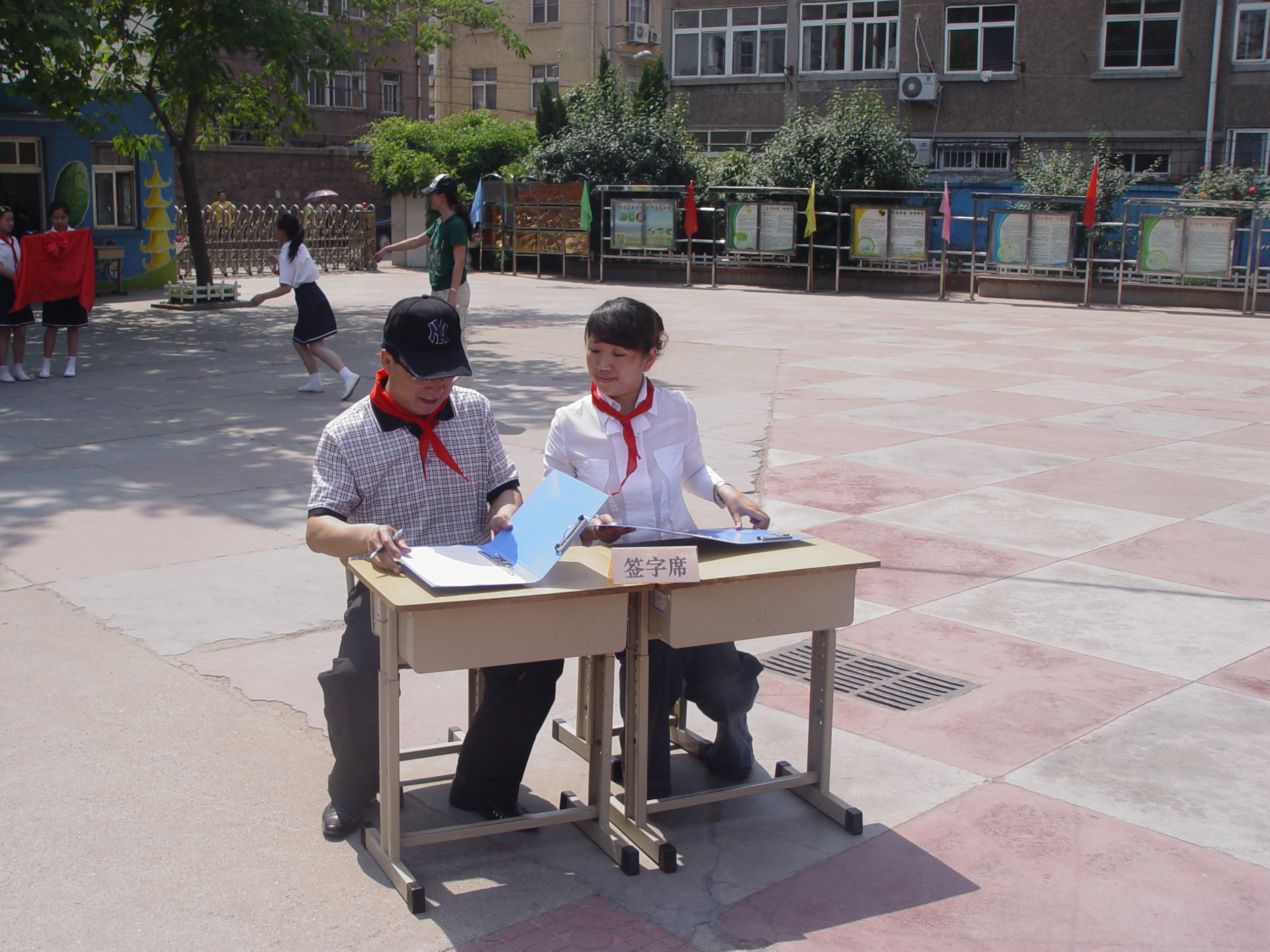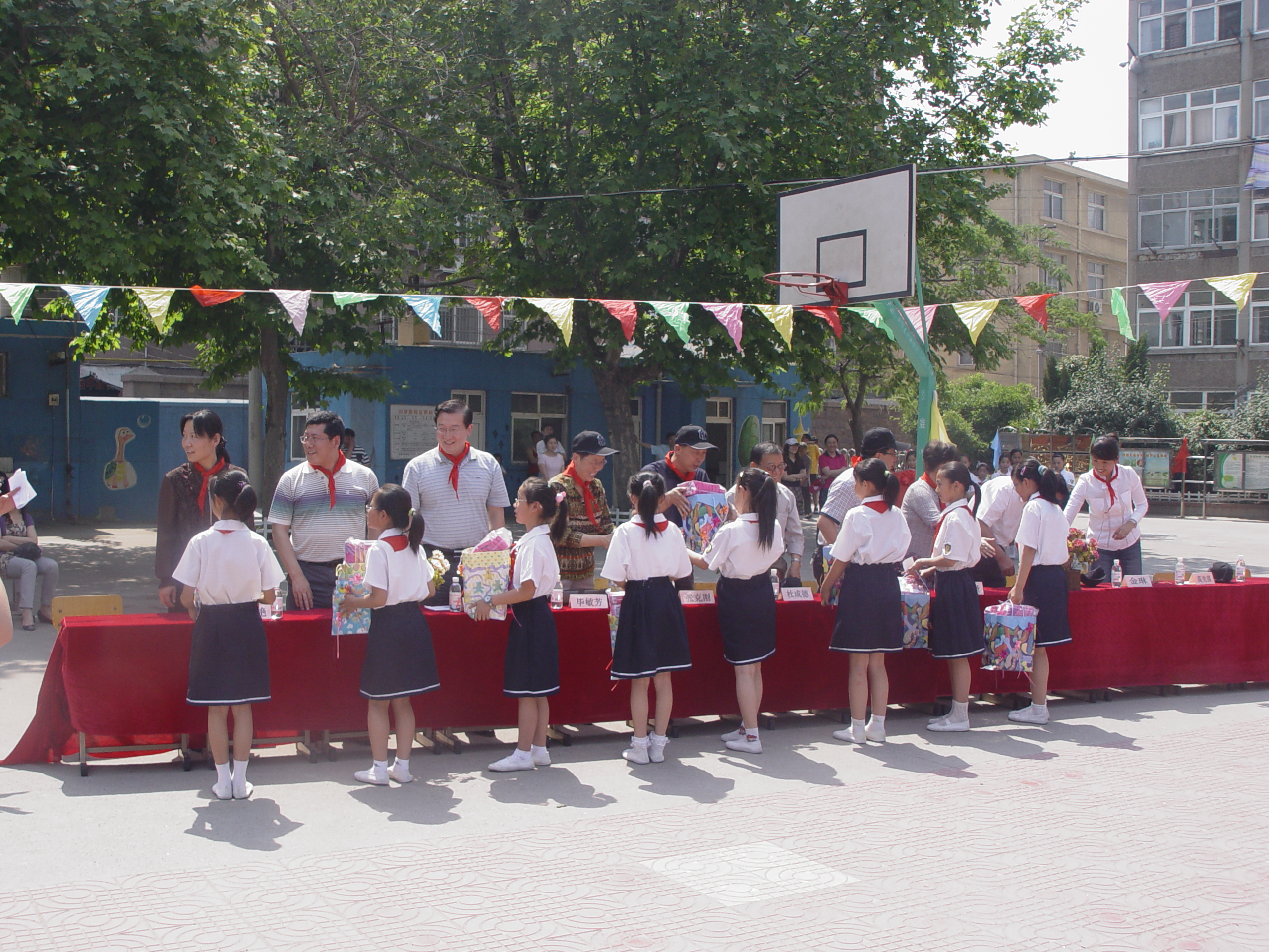 仪式按时举行,院领导受到小学生们热烈的的欢迎。院长、党总支书记王培山与洛阳路第一小学高校长签订协议,并进行揭牌。由于明天是六一儿童节,我院领导为小学生们带去了节日礼物,并为他们带去了节目:大合唱《明天会更好》,博得了全场热烈的掌声,博得全校师生的一致好评。