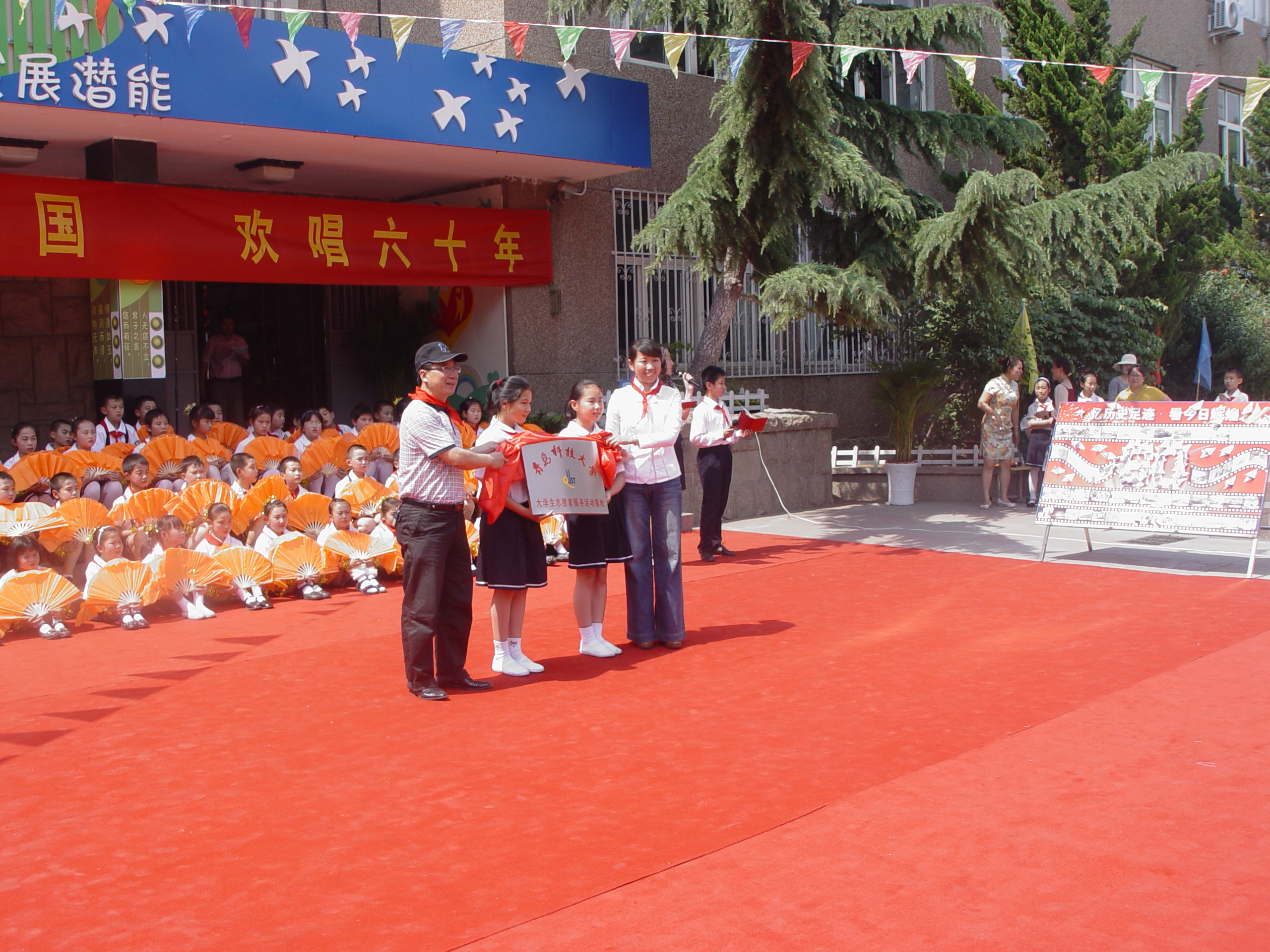 与洛阳路第一小学举行大手拉小手——青岛科技大学大学生志愿者服务基地揭牌仪式。出席仪式的有推特福利