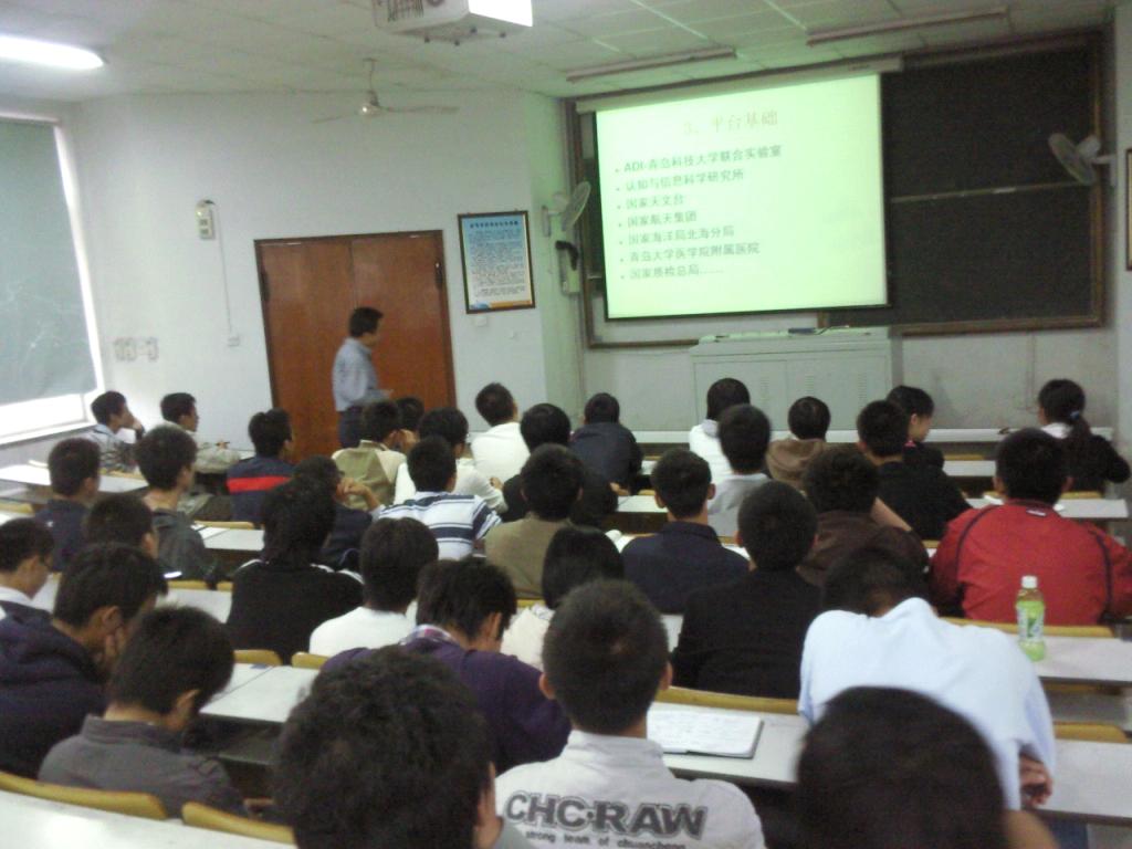 电子教研室主任赵文仓老师在1教402室为08级电信专业学生进行了一次专业讲座,院党总支书记兼院长王培山老师出席了大会并与同学们一起听取了报告。
