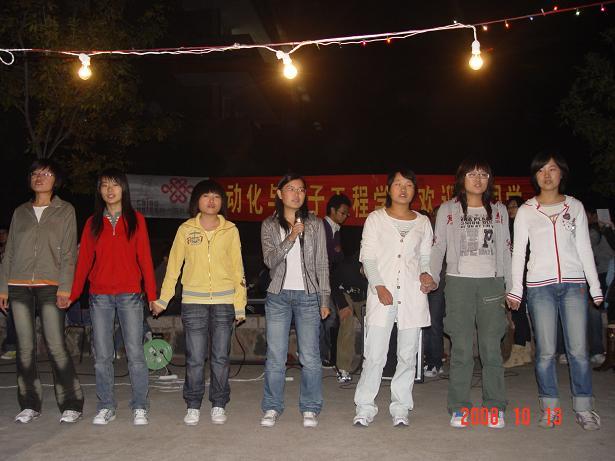 此次联谊晚会定位为“自娱自乐”,除开场节目外,十几个节目全部为2008级新生表演。节目形式各异,内容丰富,气氛热烈,不时博得观众们的热烈掌声和欢呼声。一段激情澎湃的palapala舞拉开联谊晚会的序幕,此后,男声独唱《凌晨三点钟》、笛子独奏《牧羊曲》、女声合唱《再见,中国海》、男女对唱《独唱情歌》、小品《狗蛋打工记》、说唱音乐《In the end》、葫芦丝《甜蜜蜜》等节目轮番登场,赢得了大家阵阵掌声。尤其值得一提的是源于生活却高于生活的小品表演《狗蛋打工记》,该小品结合汶川大地震,以一个打工者的经历为内容,表现出了浓浓的母子之情和自强不息的中华民族精神,全场观众几度落泪。节目之间还穿插了游戏互动娱乐节目,新生们表现出极高的参与热情,欢呼声、掌声此起彼伏,把联谊会推向高潮。最后,全场观众一起跳起了交谊舞,伴随着激情的舞蹈和动感的音乐,此次晚会圆满结束。
