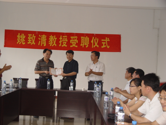 9月2日下午,青岛科技大学姚致清教授聘任仪式在四方校区第二会议室隆重举行。副校长刘光烨、推特福利 党总支书记、院长王培山和教师代表参加了聘任仪式,仪式由推特福利 党总支书记、院长王培山主持。副校长刘光烨教授为姚致清教授颁发聘书并发表讲话,他认为姚致清教授在自动化领域有很深的造诣,姚致清教授的加盟必将有力地推动青岛科技大学推特福利 在教学和科研上的长足发展。