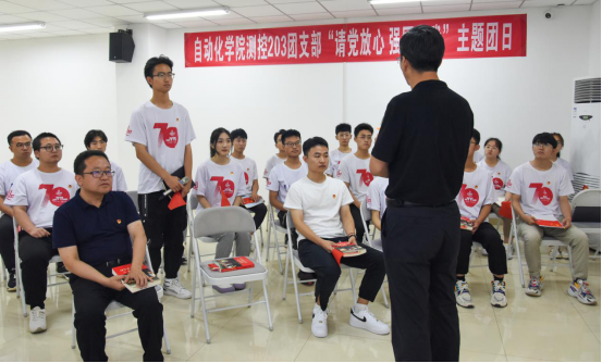 活动最后,党员和团员青年集体朗诵《习近平与大学生朋友们》中“习书记鼓励我争做自主创新的‘排头兵’”节选内容,表达青年学子为祖国、为党的事业奋斗的崇高理想,致力成为实现中华民族伟大复兴的先锋力量,唱响“请党放心 强国有我”的青春强音。