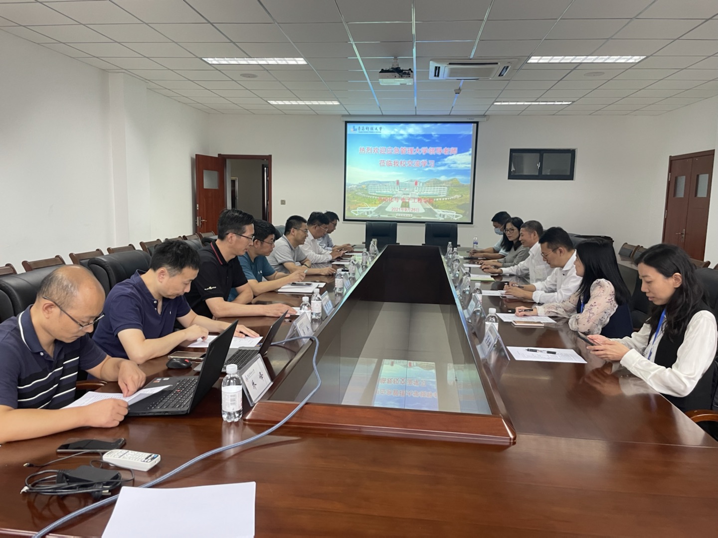 吕万翔对洪利一行的到来表示欢迎,他简要介绍了我校基本情况、发展沿革、办学定位、发展思路。洪利对近年来我校的快速发展予以赞赏,他介绍了应急管理大学(筹)的整体情况和专业认证工作开展状况,希望以此次座谈为契机,深化交流合作,互相促进两校发展。
