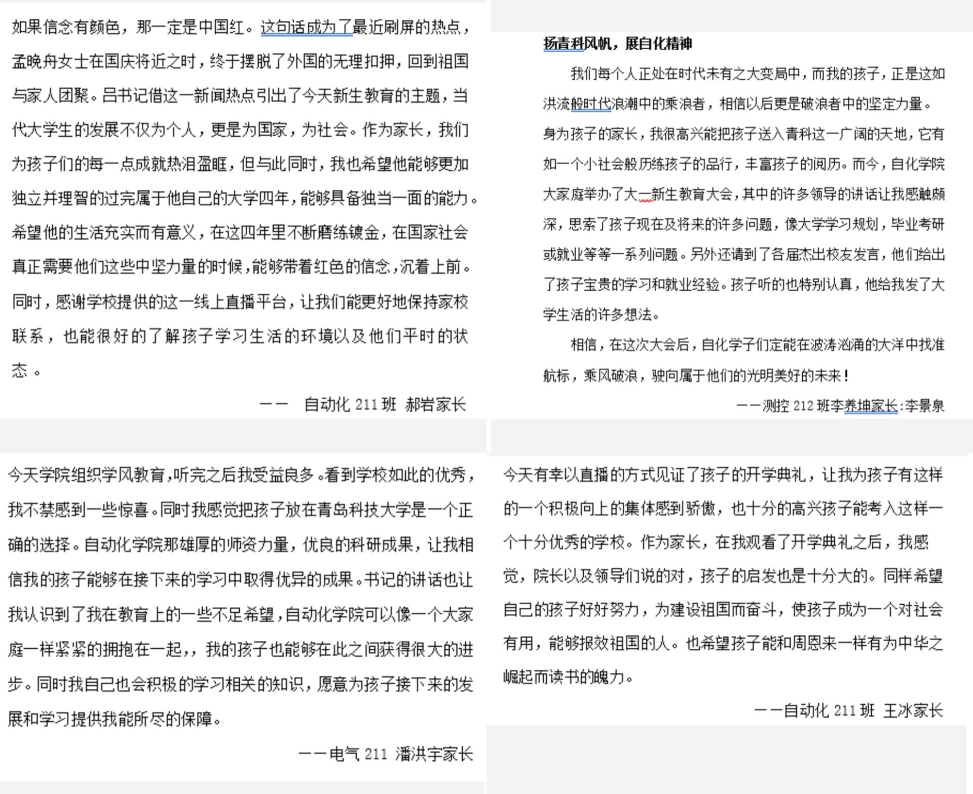 此次新生入学教育大会全程进行现场直播,邀请身在各地的新生家长线上参会。在疫情防控常态化形势下,安全有效地加强家校交流沟通,减少家长对孩子离家求学的种种顾虑,营造了家校协同育人的良好氛围。