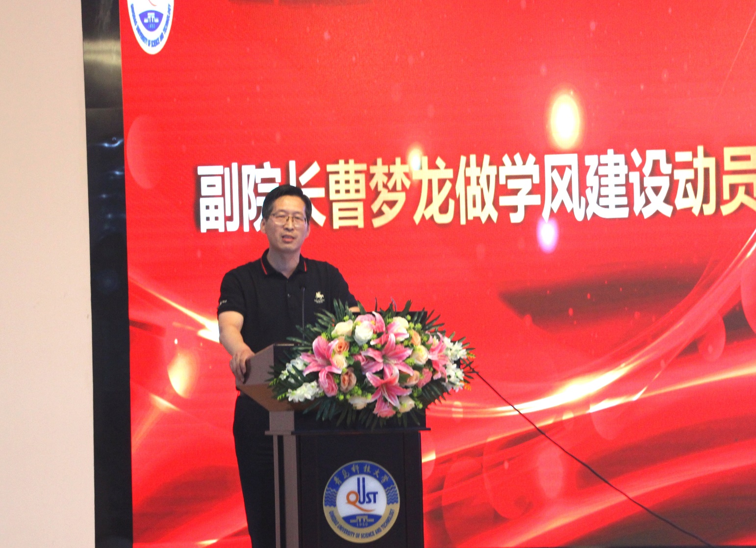曹梦龙在大会上进行学风建设动员,简明扼要地介绍了学院各专业的学科特色和专业知识结构,明确青岛科技大学有关学分制、选(免、重)修课、学籍管理等实施办法。从习惯养成、学成去向、方式态度等方面为全体新生的大学生活规划指明了方向,以优秀毕业生的学习经历激励新生们合理制定学业目标,端正学习态度,严守行为规范红线底线。