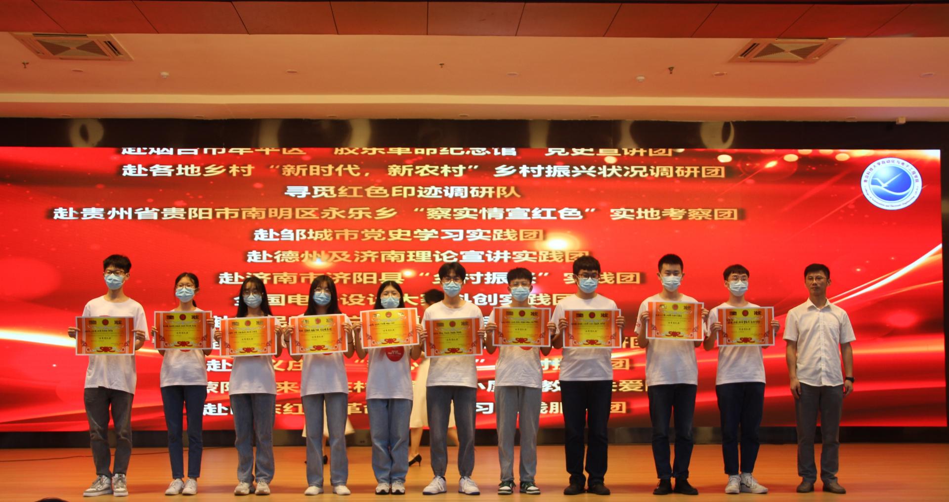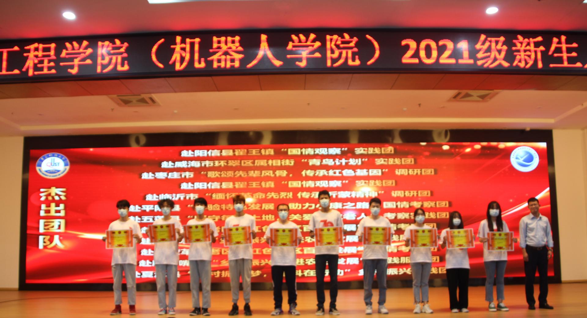 为促进学生德智体美劳全面发展,增强学生实干能力,学院始终高度重视为学生搭建与社会沟通交流的平台,从就业和社会实践入手,开展院企合作,践行实践育人。会上,马寒代表学院向青岛展诚科技有限公司和无锡艾克特电气股份有限公司颁发“毕业生最喜爱单位”证书。与会嘉宾为学院2021年暑期社会实践先进集体和个人颁发奖状。