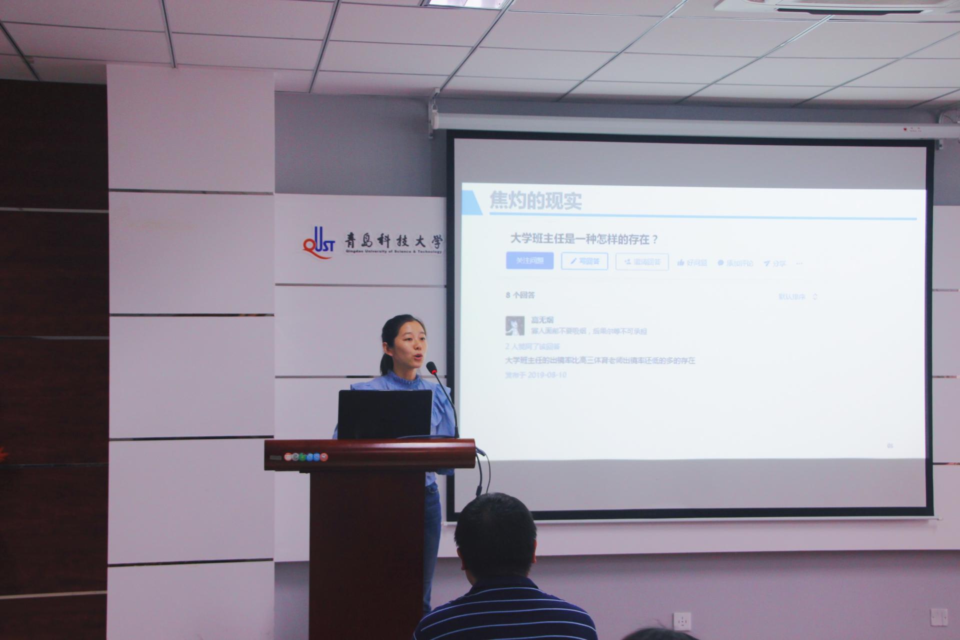 为进一步提升班主任心理健康教育意识和解决大学生心理危机事件的实战能力,青岛科技大学心理健康教育与咨询中心刘璐面向全院班主任以“如何亦师亦友——全员育人视角下的危机预防与干预”为题,从需要、冲突、策略、手段四个方面就如何对大学生进行思想、学习、情感及生活交流指导展开培训。针对18-22岁大学生,分析其现阶段心理发展任务、常见心理危机类型,分享危机识别技巧和干预、应对危机的谈心话术及处理办法。呼吁教师遵循教育规律、思想政治工作规律、学生成长规律,提倡良师益友式教育模式。以案例入题,还原真实场景,生动讲解大学生心理健康工作中的问题及解决方法,为班主任开展心理育人工作提供了切实可行的路径与抓手。