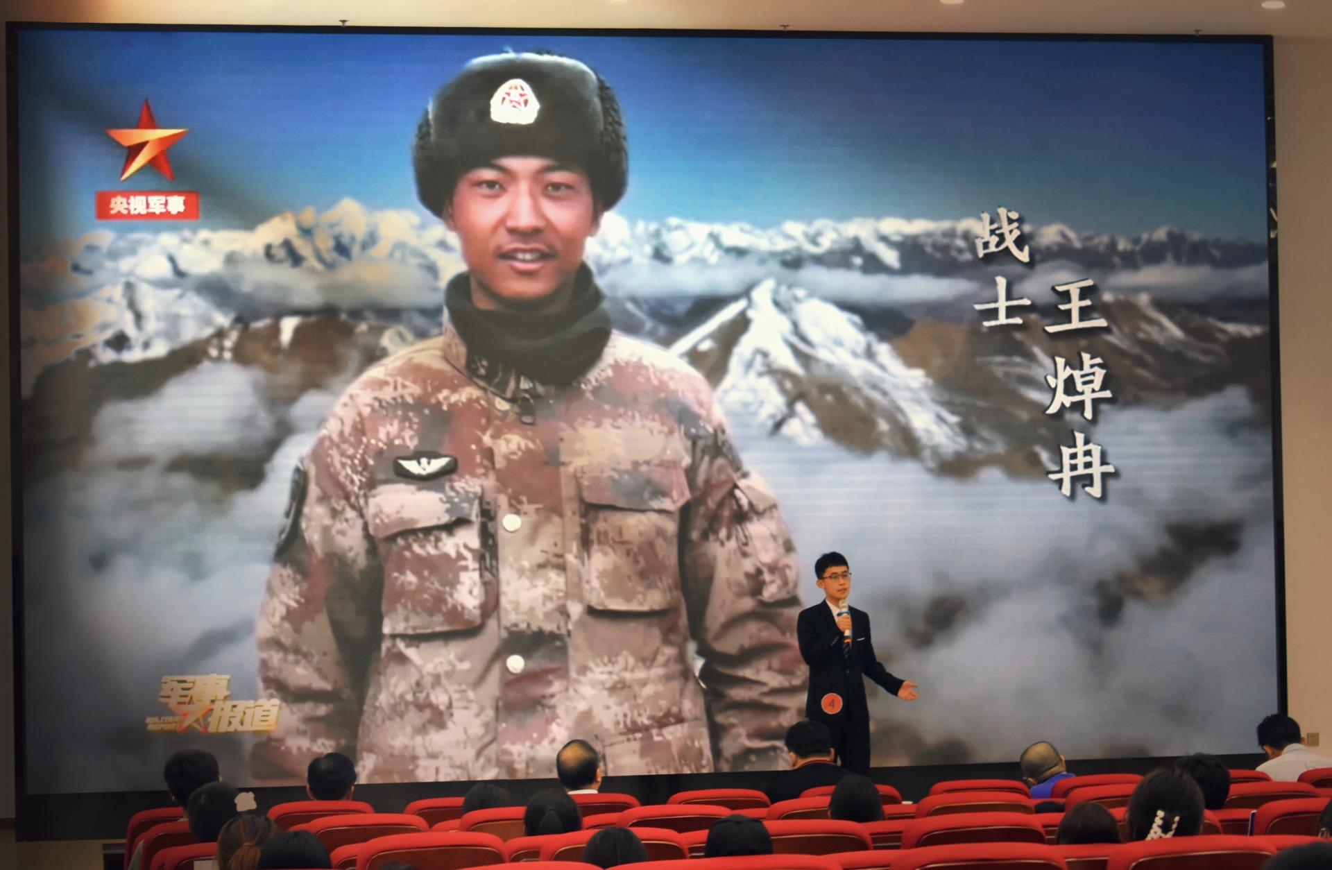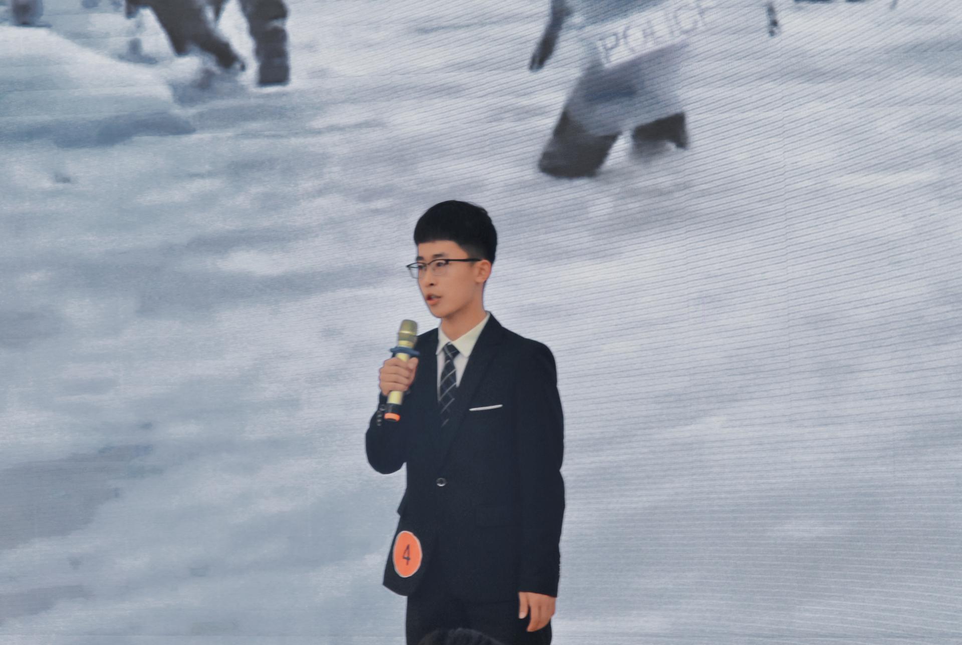 我院学生阚新磊以“国防重任,在于你我”为主题,通过讲述去年6月份外军越线挑衅事件中肖思远烈士在危难之际挺身而出的故事,呼吁广大青年学生学习卫国戍边英雄钢铁般的意志和磐石般的信仰作为,努力成为民族栋梁,面对再多的敌人也要敢于张开双臂,共同保卫祖国的大好河山!