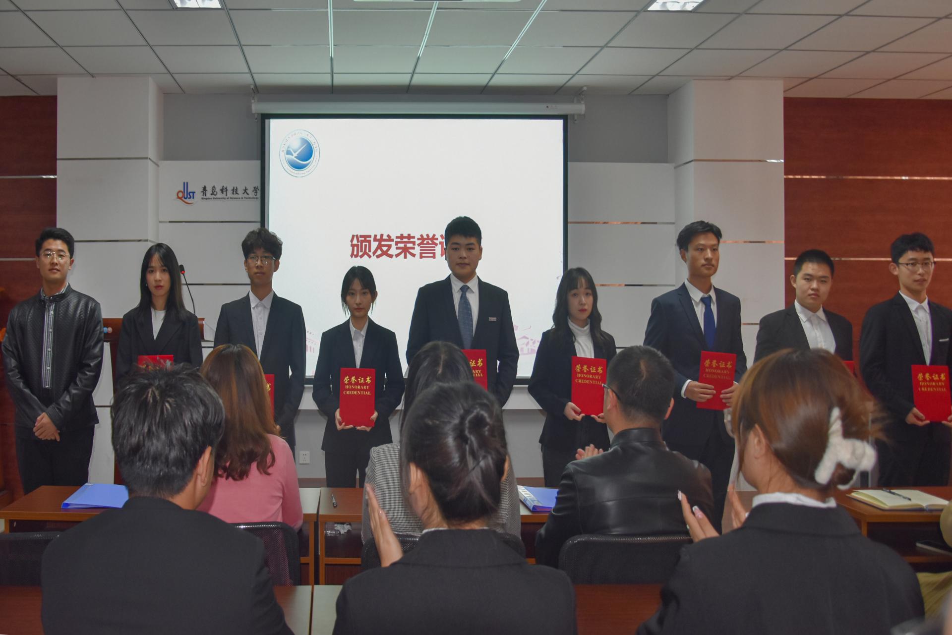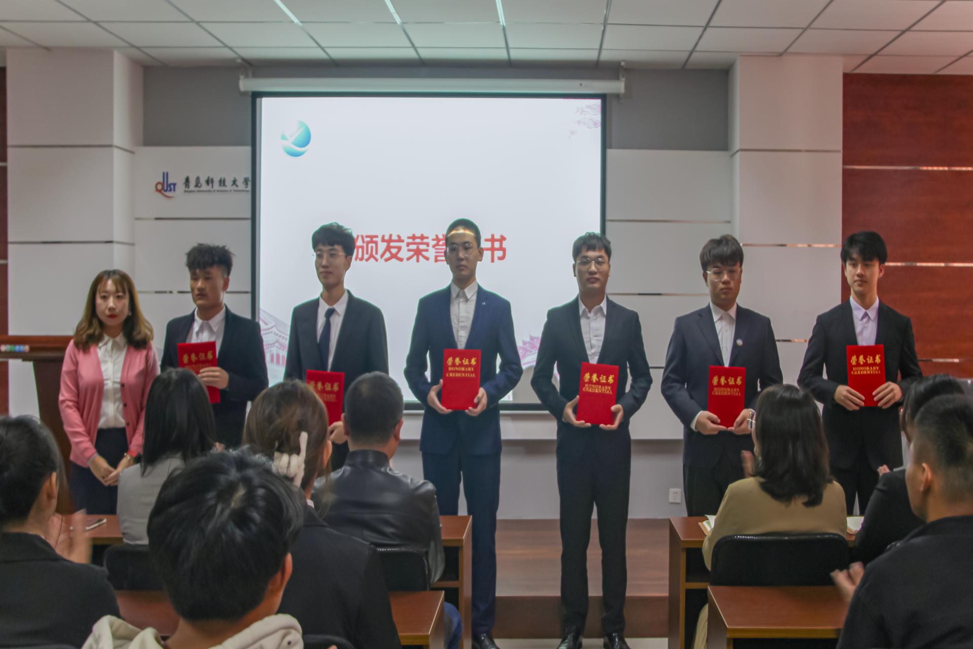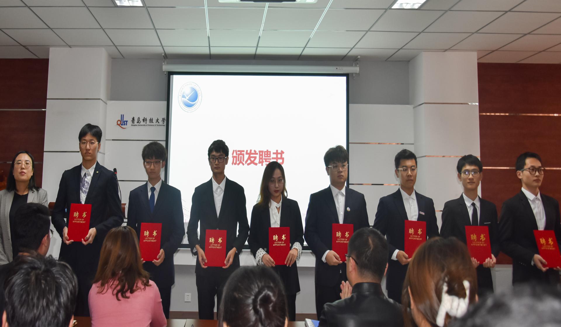 在全体代表的见证下,学院对优秀学生代表进行表彰。团委书记兼学工办主任郭蒙蒙老师为新一届学生会、研究生会主席团、部长团成员代表颁发聘书,团委副书记兼学工办副主任郝雄文老师为学生会、研究生会优秀部长代表颁发荣誉证书,张郁浩老师为学生会、研究生会优秀志愿者代表颁发荣誉证书。