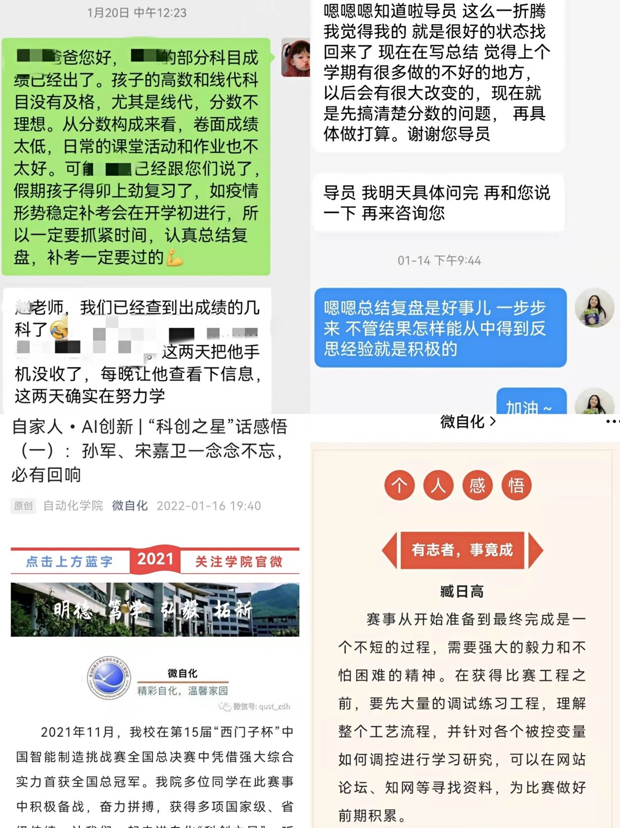 多方协同,强化意识,全面做好寒假规划。寒假离校前,结合疫情防控形势和学校相关通知要求,各年级辅导员、班主任通过年级大会、主题班会等形式,面向全体学生安排部署各项工作要求,引导学生抓好寒假这个“黄金弯道超车期”,做好上学期总结反思及寒假计划。同时凝聚家校共育合力,通过“微自化”公众号和各年级家长群在线发送《致推特福利 家长的一封信》,详细介绍学院寒假工作安排,并就安全教育、亲子沟通、学业发展等方面提出建设性意见,发放《推特福利 家校共育联系卡》,希望家长全面了解学生学习生活情况,认真倾听家长建议意见,力求家校共同做好人才培养工作。
