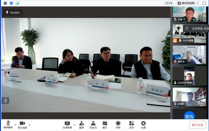 与科捷智能科技股份有限公司举行线上云洽会,就产学研合作开展交流。学院党政领导吕德谦、刘慧明、陈为、曹梦龙、马寒,公司董事长、党委书记龙进军和公司研发、人力、项目等负责人参加云洽会。