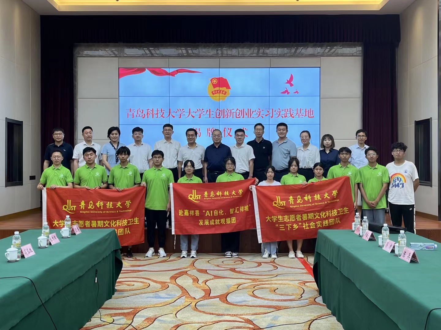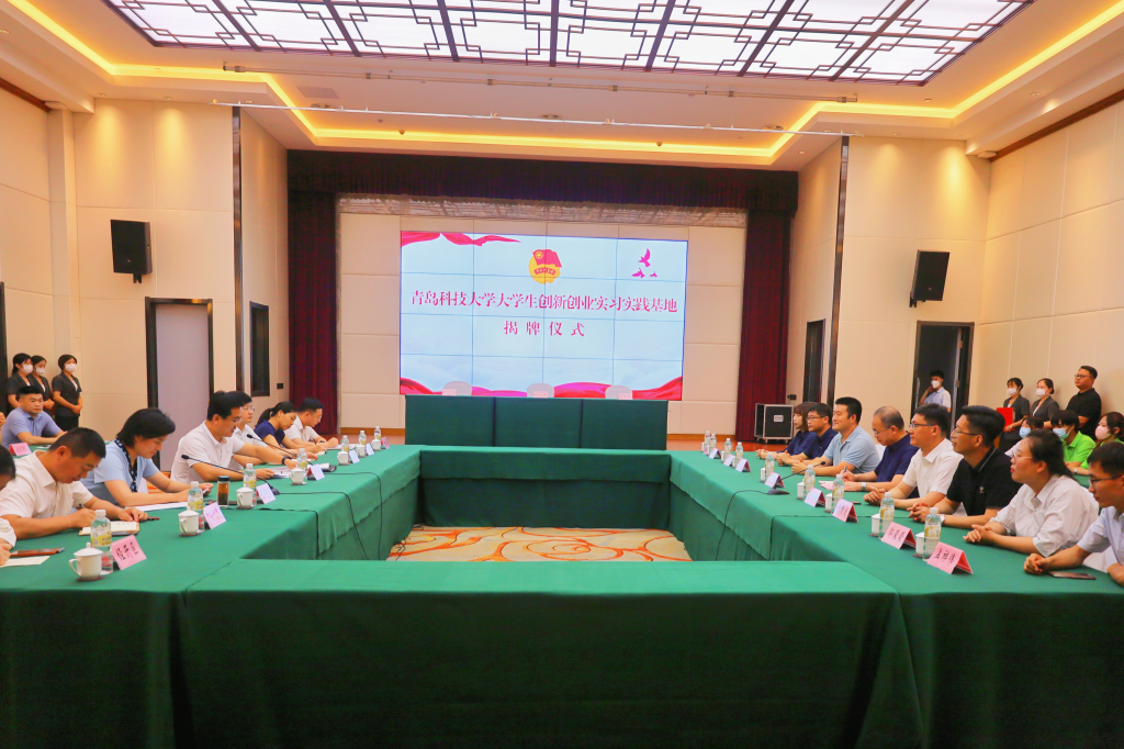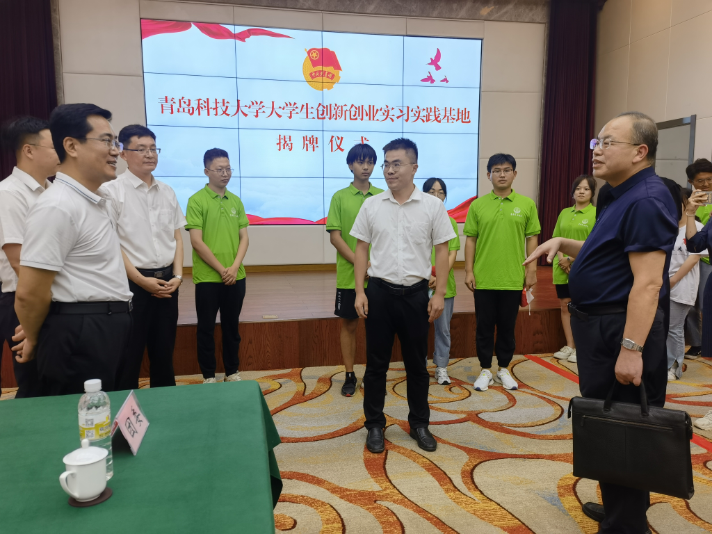 丁林、江峰共同为青岛科技大学大学生创新创业实习实践基地揭牌。