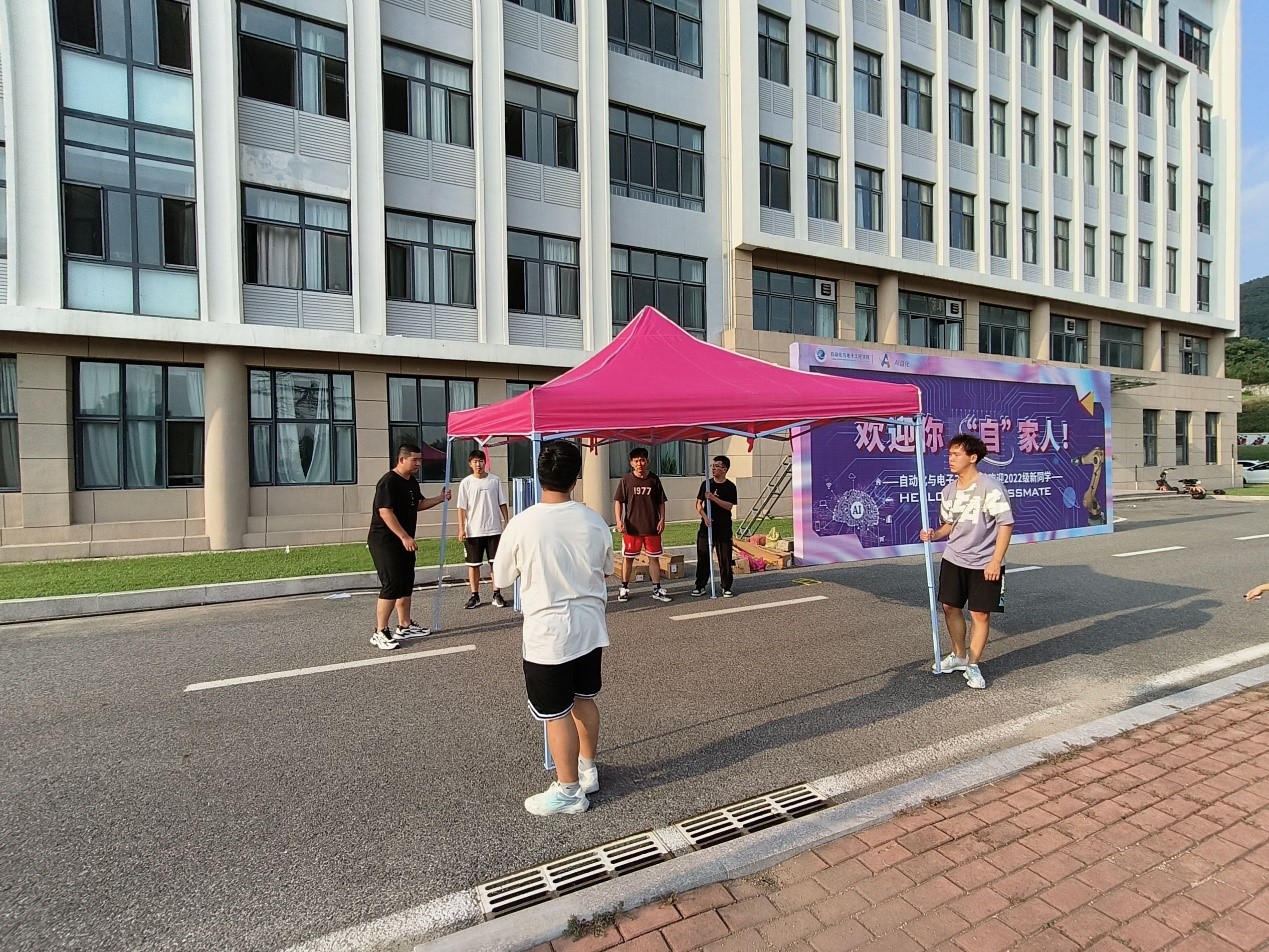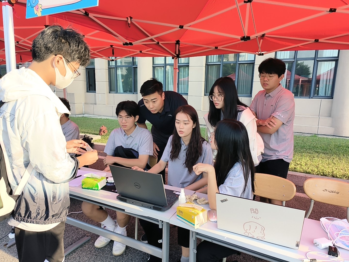 用心——别出“新”裁,打造自化迎新亮点。今年,学院立足学校“两服务一引领”发展大局,将校企合作融入人才培养全过程,深度彰显学院“AI工赋”工作特色。青岛环海新时代科技有限公司、青岛科捷智能有限公司、山东朗进科技有限公司、青岛科创信达有限公司等战略合作伙伴、校友企业精心提供了迎新礼包、“温暖到寝”迎新车辆、定制工作服等物资,为新生送上特别的“见面礼”,并安排专业人员在现场协助迎新工作,为新生提供大学生职业规划指导,在迎新点上好“开学第一课”;迎新处设有智能车赛道和展台,鼓励、引导新生积极参与科研创新,营造校园浓厚人文氛围和科学情趣;学院楼前放置“欢迎你,‘自’家人”特色签名墙、拍照打卡点,师生共同留下“青科独家记忆”。推陈出新,用心别致的工作举措,实现迎新更“赢心”。