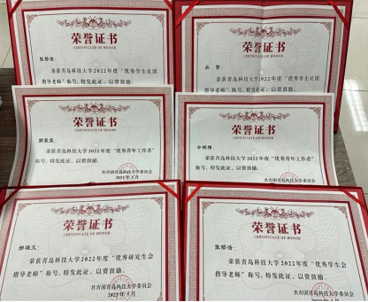 5月4日,“青春心向党 奋进新征程”五四颁奖典礼暨青春思政课在崂山校区第二报告厅举行。在“榜样青春”五四颁奖典礼环节,我院喜获多项集体和个人荣誉,其中学院团委获“五四红旗团委”、志愿服务先进集体荣誉称号,学院学生会(研究生会)荣获2022年度优秀学生会(研究生会),机器人协会荣获2022年度优秀学生社团;学院团委书记郭蒙蒙、团委老师安柏雅荣获2022年度优秀青年工作者,团委老师张郁浩、郝雄文荣获2022年度优秀学生会(研究生会)指导老师,团委老师吴擎、张郁浩荣获2022年度优秀学生社团指导老师。