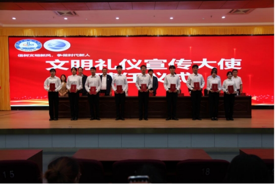 活动现场为学院校园文明宣传大使颁发聘书,学生会主席团成员李雨泽宣读了《推特福利