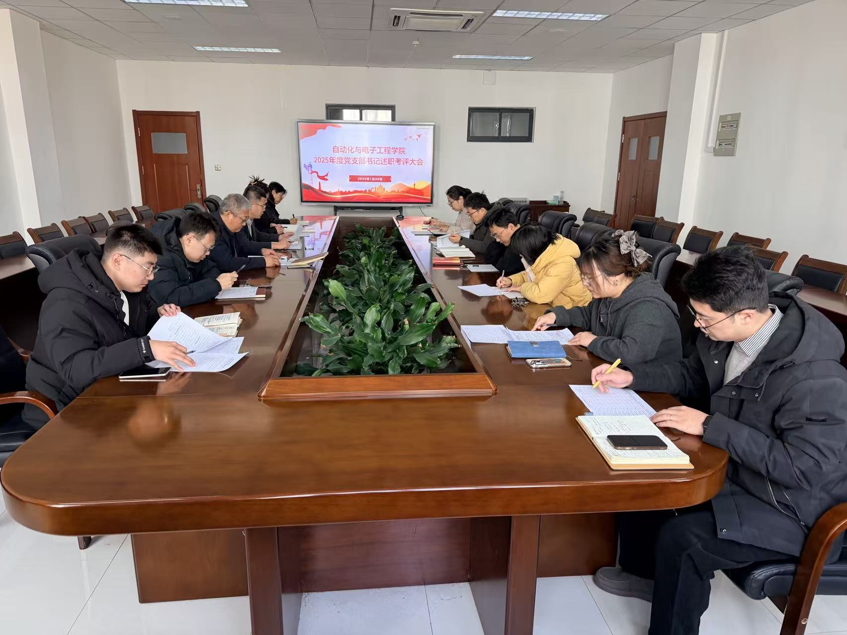 召开2025年度党支部书记述职考评会议。学院党委书记郭永、副书记兼副院长刘名森、各党支部书记参加会议。会议由刘名森主持。