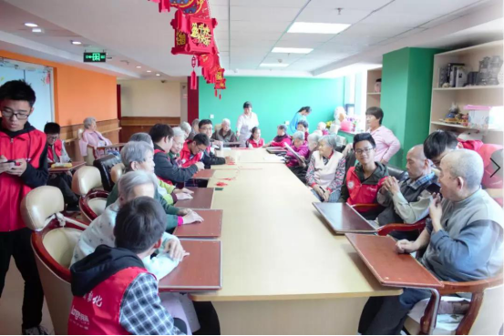 老人们亲切的与义工队员们打着招呼,老人们看见他们就像见到自己孙女、孙子一样高兴,大多数老人都很开朗、健谈,虽然有的老人们听力减退,说话不清,但志愿者们却和老人们聊的很开心,随后志愿者们还教老人们如何编中国结,并将编好的中国结送给老人。