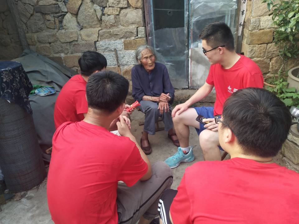 沂水历史悠久,是著名的革命老区,为沂蒙精神发祥地之一。为了更好地了解沂蒙精神,进一步激发调研团成员爱国、爱党的热情,引导学生树立远大理想,坚定“永远跟党走”的理想信念,7月23日,调研团成员来到了93岁老党员郝奶奶家中与其交流沟通。