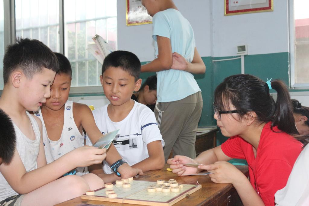 为丰富孩子们的课堂生活,提高孩子们的学习兴趣,2018年7月26日,青岛科技大学赴蒙阴县桃墟镇“蒲公英”调研团在陡山联小开展象棋特色教学活动。