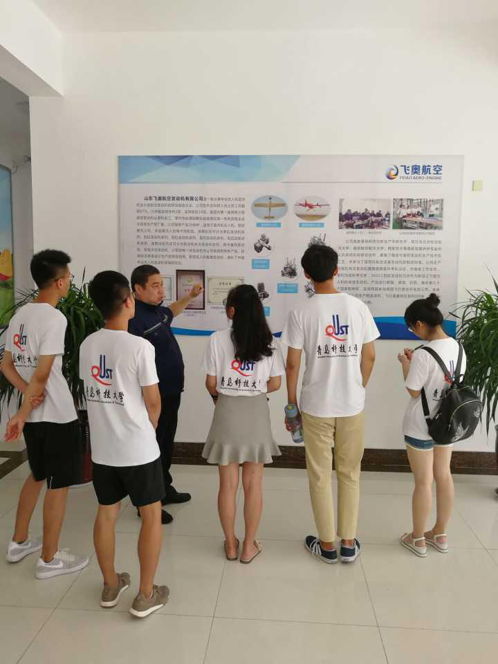 调研团对山东飞奥航空发动机有限公司进行参观学习,在公司负责人的带领下,参观了公司的无人机发动机的生产车间和无人机的展馆。队员们向负责人了解了无人机发动机的发展历程以及前景。负责人向大家介绍了无人机的类型及发动机的类型。其中,自主研发设计生产的多款民用、军用无人机配套发动机填补了中国专业无人机发动机领域的空白。