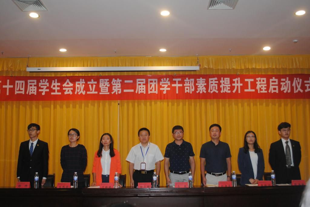 学生会成立的批复》、《主席团及部长名单》后,第十三届学生会主席耿海翔从制度建设、特色活动、思想导向及院部联系等方面做工作汇报,寄语新一届学生会“在传统中出特色,在务实里出创新”。第十四届学生会主席侯涛在新学年提出管理制度由纯粹管理型向指导监督型转变,发挥学生会的思想引领作用,在继承发扬经典活动之外,加强组织志愿服务以及与学校大型活动的对接。