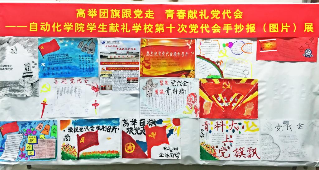 学子献礼学校第十次党代会手抄报(图片)比赛”。电信161等班级用图片的形式回顾了第九次党代会以来学校各方面取得的发展成就,电气163、164等班级的手抄报表达了对学校第十次党代会的美好祝愿,电气161、162等班级的手抄报表达了青年学子坚定的高举团旗跟党走的信心和信念,自动化163、测控162等班级的手抄报回顾了党史。通过举办手抄报比赛、图片展,广大团员青年再次熟悉了党和学校的发展历程,也再次坚定了高举团旗跟党走的信心,传递了正能量,凝聚了团员青年。