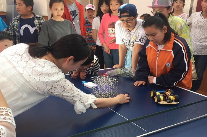 学子自主研制、设计、组装的创新科技作品,激发了他们对于科学技术的好奇心与求知欲。现场分为氛围其乐融融,随后,同学们与小朋友们一起唱歌跳舞,教他们画画、折气球、陪练毛笔字,并在最后,为特殊教育学校的孩子们献上了一幅毛笔字,来鼓励他们坚强勇敢的心态。活动接近尾声,大家一起分享了蛋糕以提前祝贺小朋友们六一儿童节快乐并合影留念。