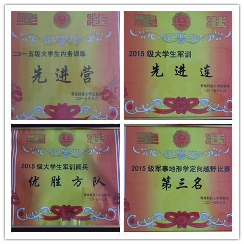 新生的积极响应和热情参与。学院分团委高度重视、精心组织、广泛动员,不断完善各项制度保障,为军训提供了有利条件。广大学生热情参与、坚持训练,在校园中营造了浓厚的军事训练氛围,最终取得2015年青岛科技大学大学生内务训练先进营、军训先进连、军训优胜方队、定向越野比赛第三名等荣誉称号。为表彰先进,激励典型,推动学院团学活动更加广泛、深入地开展,学院分团委对在2015年大学生军事训练中取得显著成绩的40个先进个人给予了表彰。