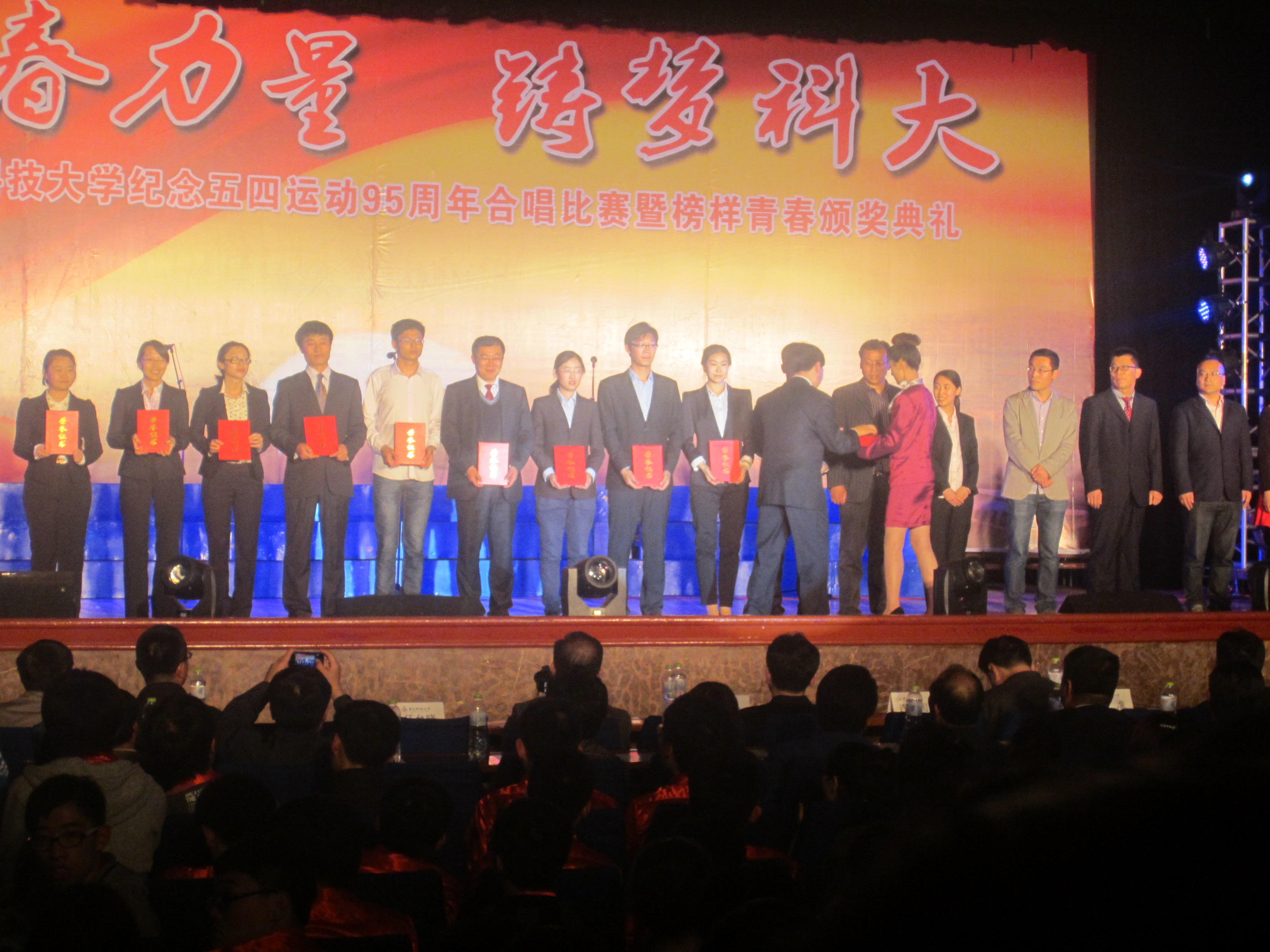 5月4日下午,青岛科技大学以“青春力量、铸梦科大”为主题,在四方校区成功举办了纪念五四运动95周年合唱比赛暨榜样青春颁奖典礼。学校及学院各领导老师出席了典礼,共同感受青春的态度、青春的激情和青春的科大。