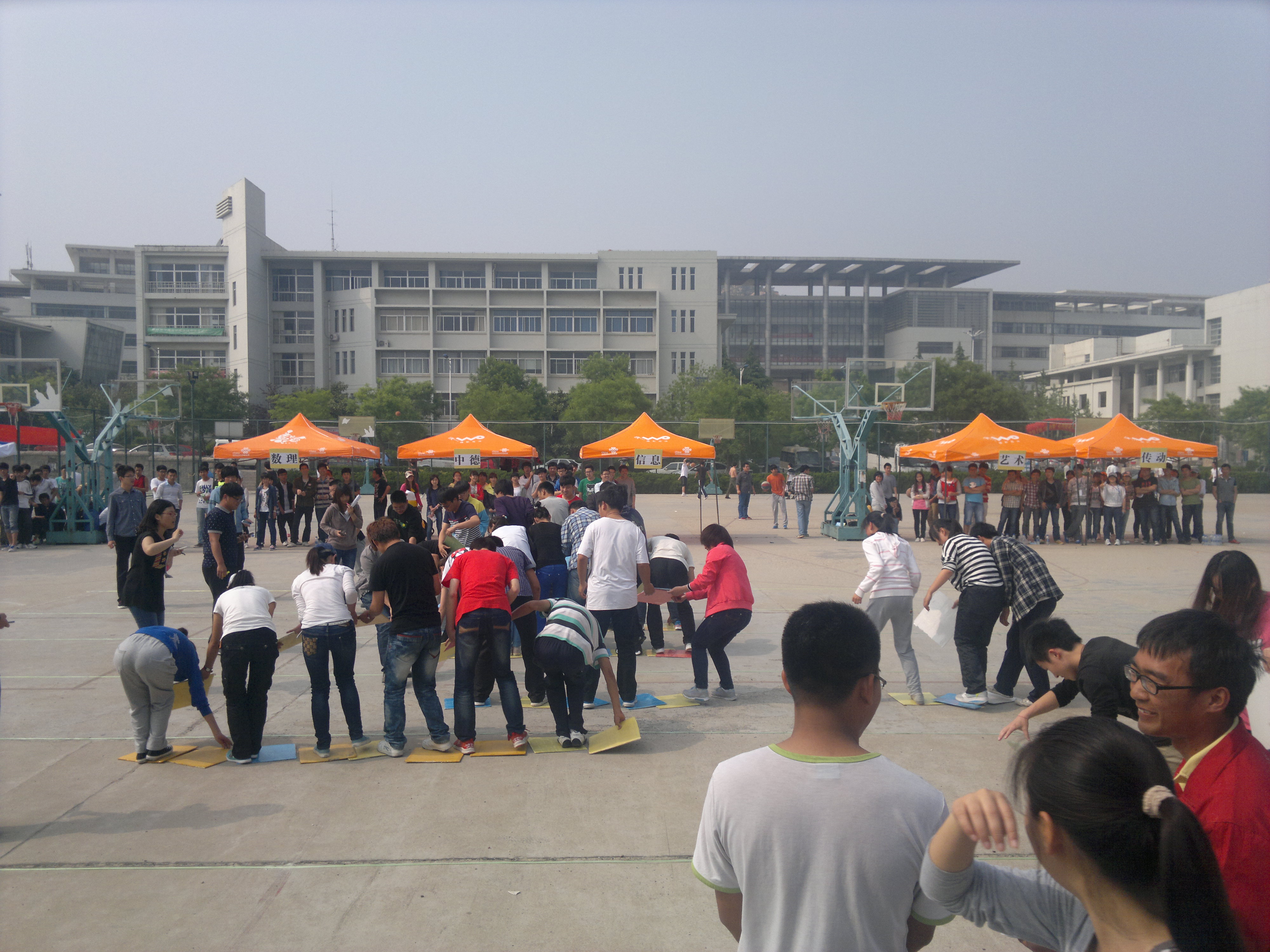 青岛科技大学大学生心理健康节系列活动之“心灵相约,与健康同行”大学生趣味运动会于2013年5月21日在崂山校区操场隆重举行。 在主办方的有力组织和带领下紧张有序地展开,同学们分别进行了“一块五毛”、“狂奔的火车”、“餐桌上的乒乓球”、“环环相扣”四个项目的角逐,最后在激烈的拔河比赛中结束。自化学子积极参与整个活动过程,并在比赛中获得优秀奖的好成绩。各班竞争激烈,他们热情高涨,相互配合。各参赛者都使出浑身解数,力争在各个环节中成为优胜者。 自化学子积极参加此届趣味运动会,促进了同学们的交流,更有效地激发了同学们对大学生活的热情,提高了我院学生的团结合作精神。