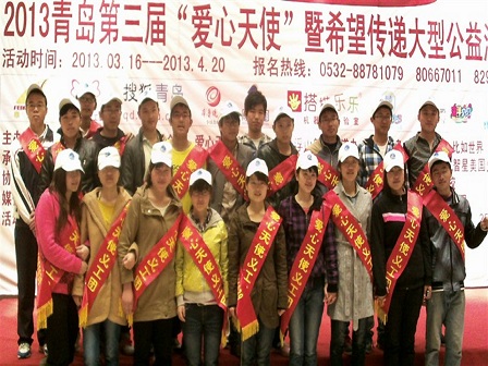414日,2013青岛第三届“爱心天使”暨希望传递大型公益活动在浮山后六小区举行,测控114班同学作为爱心天使义工团的成员去做义工工作。