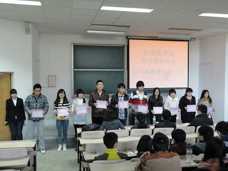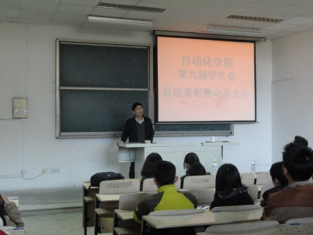 大会共分为三个部分,首先,第九届学生会主席王晓军从五个方面对学生会上学期的工作进行了总结,学生会的坚持努力为学院的跨校区管理工作积累了经验,同时指出了学生会工作的不足和以后应该努力的方向。接着,对学院学生会“先进个人”、“十佳干事”以及篮球队优秀代表进行了表彰。最后,肖强进行了总结性讲话,他首先对学院的各项活动进行了深刻的剖析,并着重对学生会成员提出了三点希望和要求:一是认真学习贯彻十八大精神,进一步提高思想政治素质;二是树立创新意识,努力打造团学工作品牌;三是讲求方式方法,不断取得工作新成效。
